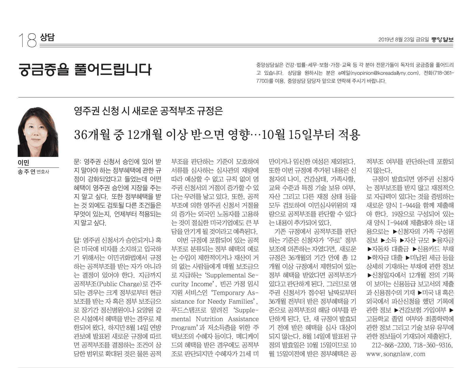 하지만 8월 14일 연방 관보에 발표된 새로운 규정에 따르면, 공적 부조를 결정하는 조건이 상당한 범위로 확대된 것은 물론, 공적 부조를 판단하는 기준이 모호하여 서류를 심사하는 심사관의 재량에 따라 예상할 수 없고, 규칙 없이 영주권 신청서의 거절이 증가할 수 있다는 우려를 낳고 있다.