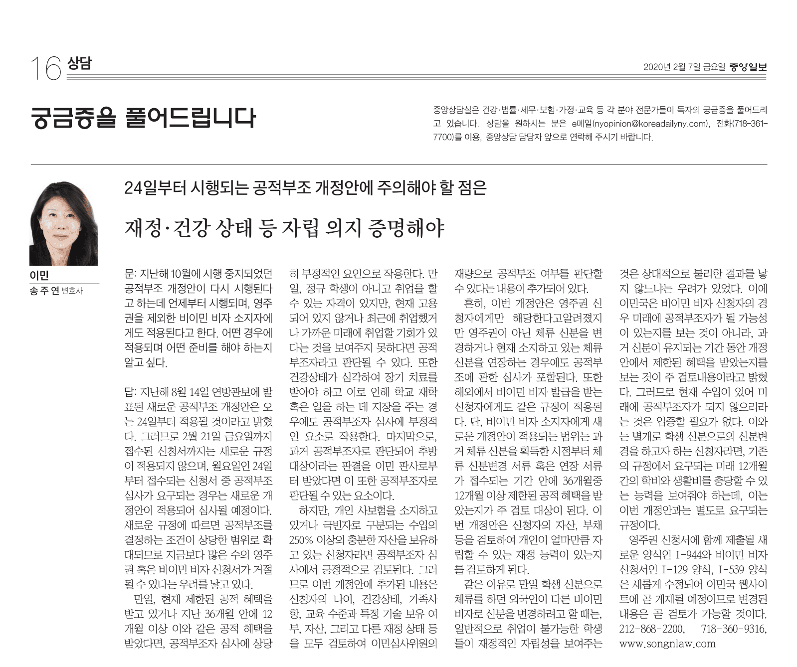 따라서 2월 21일 금요일까지 접수된 신청서까지는 새로운 규정이 적용되지 않으며, 2월 24일 월요일부터 접수되는 신청서 중 공적 부조 심사가 요구되는 경우 새로운 개정안이 적용되어 심사될 예정이다.
