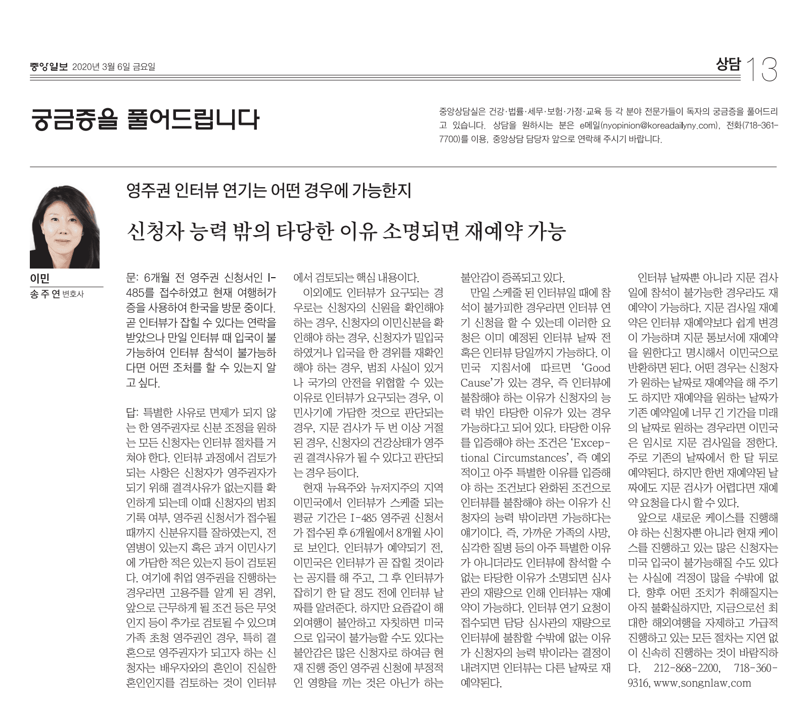 영주권 인터뷰 연기는 어떤 경우에 가능한지