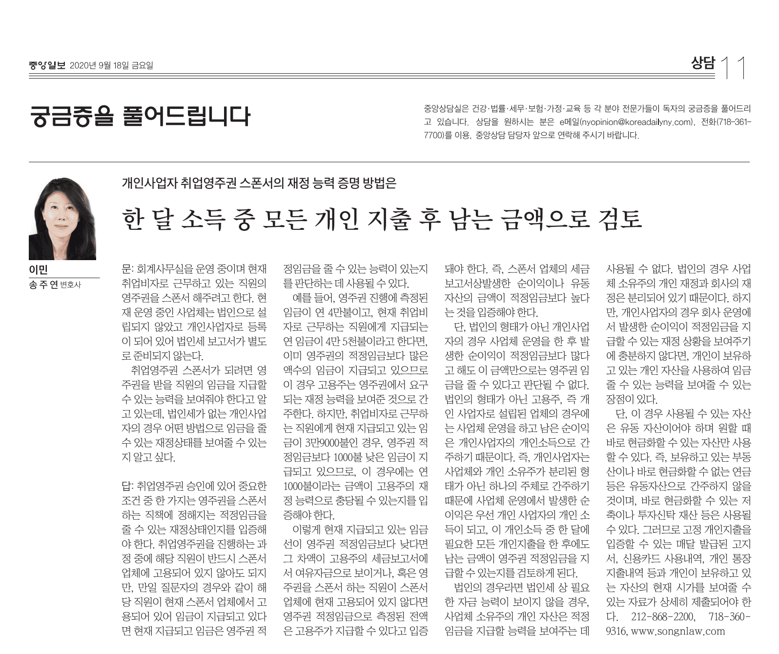 개인사업자 취업영주권 스폰서의 재정 능력 증명 방법은