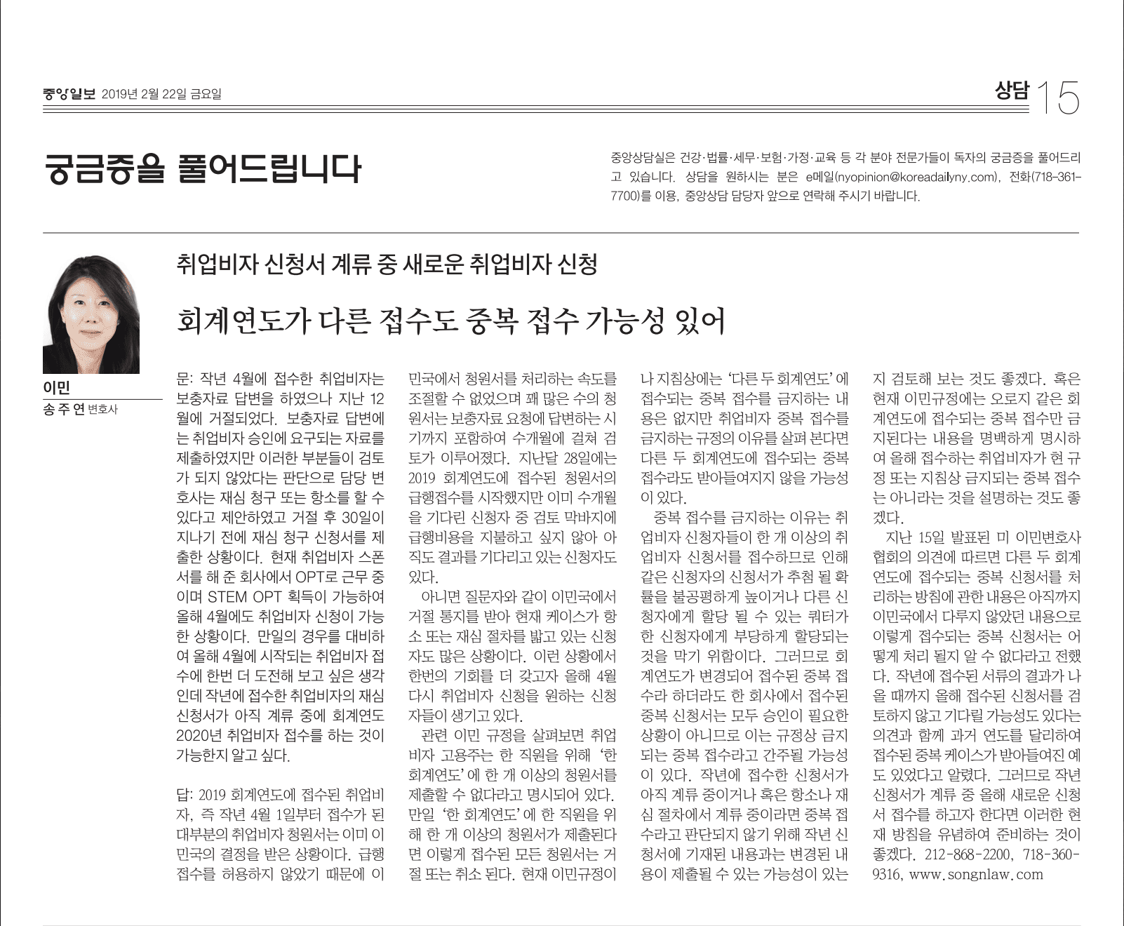 회계연도별 취업비자 중복 신청 가능 여부